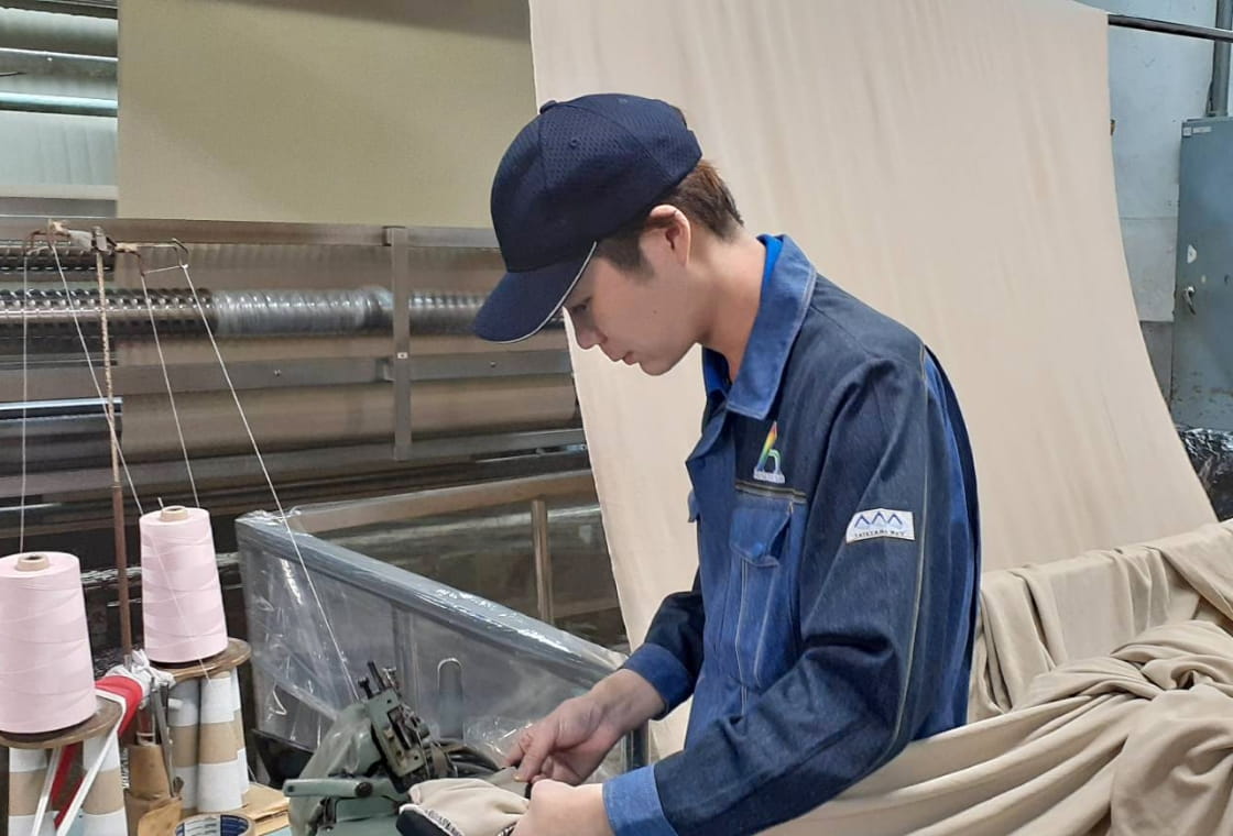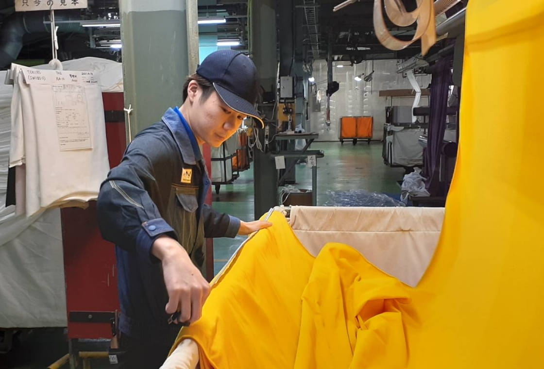僕自身服が好きで、服が作られる過程の中で生地の開発や生地の加工方法に関心がありこの会社に入社しました。仕事の中で生地に関する知識はもちろん、加工した生地がどのような商品になるか等、責任感は持ちつつも日々加工したものに対して興味が尽きないような業務を行っております。服が好きな方、モノづくりに興味がある方は是非一緒に働きましょう!
