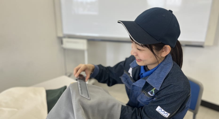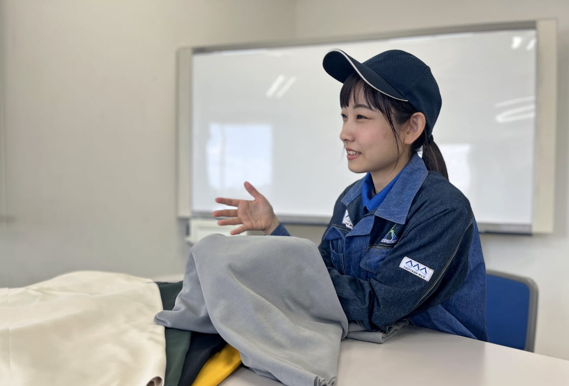開発エリアの役割としては、「加工技術の永続的な革新」を実現することです。スポーツ・アウトドア・衣料・自動車・資材用など、さまざまな用途の生地開発を行っており、よりお客様に求められる生地を追求しております。手にした人がワクワクする素材を作る、楽しんで素材開発をする、そしてそれができる人を育てる部署になります。多くの人から子供たちを入社させたい、開発エリアで働きたい、と言っていただける会社になるよう取り組んでいます。
