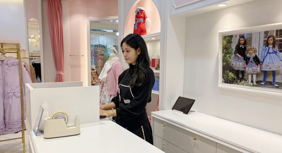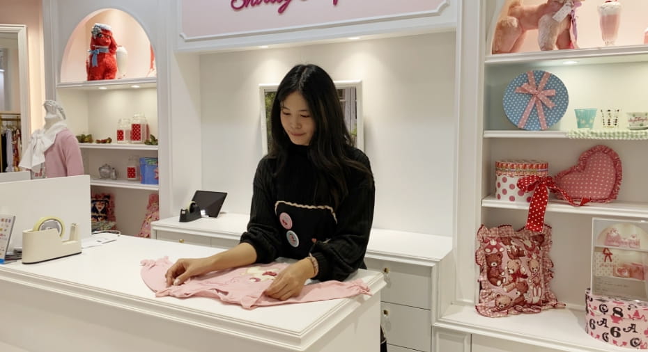 この仕事のやりがいは、お客様に喜んでいただけた時に1番感じます。シャーリーテンプルは、長年ファンでいてくださるお客様がたくさんいらっしゃるブランドです。お客様と販売員の距離が近く、たくさんの嬉しい声が直接いただけるため、仕事をする上でやりがいに繋がっています。また、海外のお客様のご来店も多く、さまざまなお客様とお話する機会が多いので、毎日楽しく接客販売に取り組むことが出来る点が魅力です。